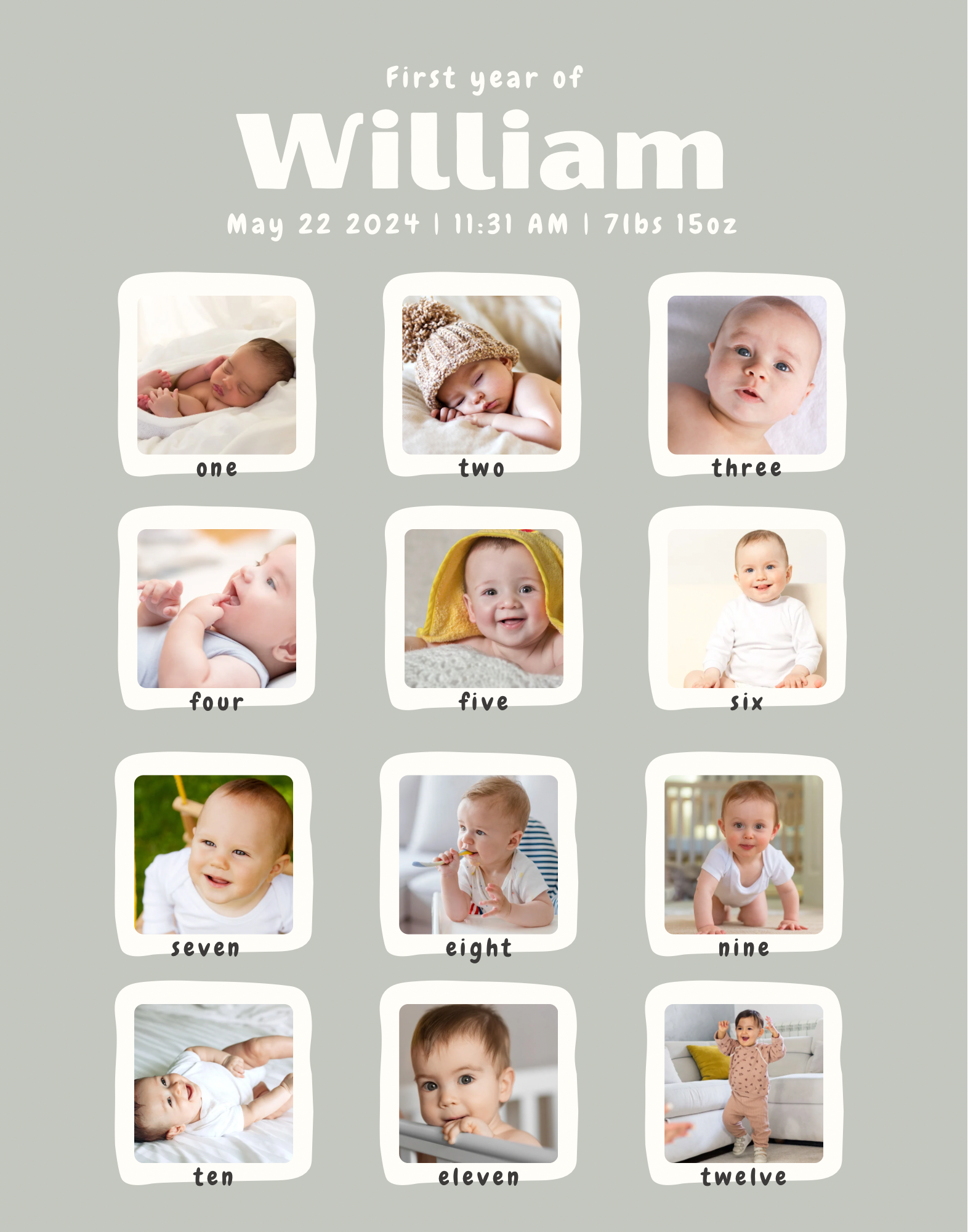 365 jours de moi est une affiche souvenir à remplir avec les photos des 12 premiers mois de votre bébé. Une façon simple de voir toute l’évolution de sa première année en un seul coup d’œil.
